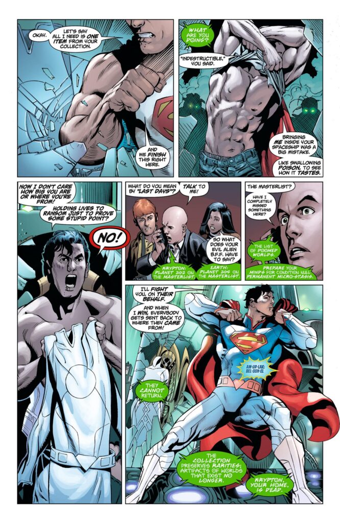 La tecnología kryptoniana es la que desarrolla el traje de Superman, como vemos poco después.