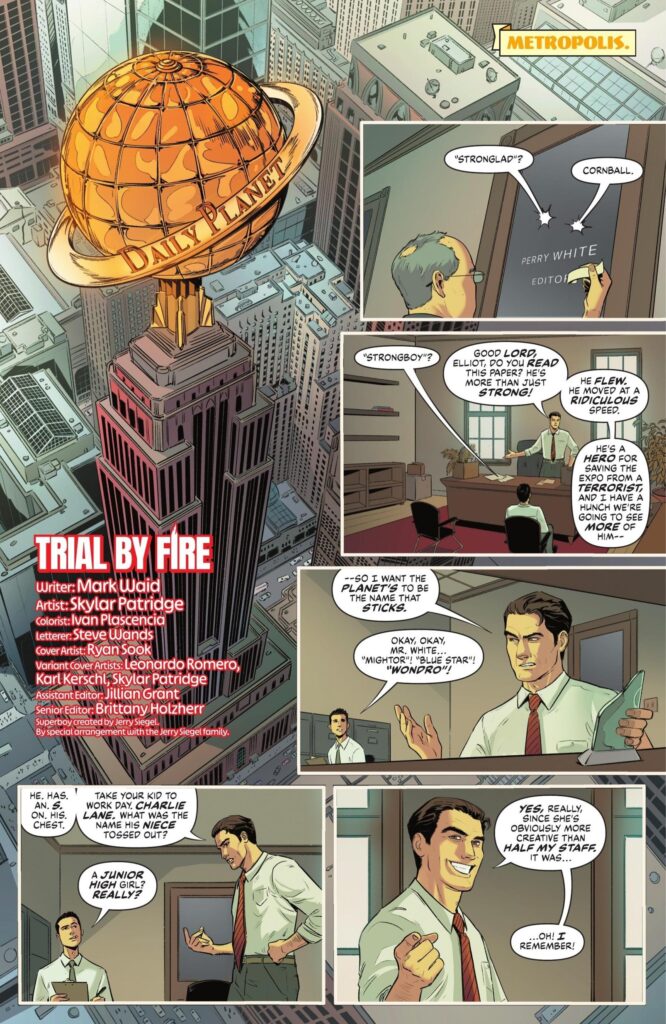 Lois Lane, una niña de secundaria que por casualidad estaba en el Planet cuando Clark actúa de manera pública, es la que lo bautiza como «Superboy»