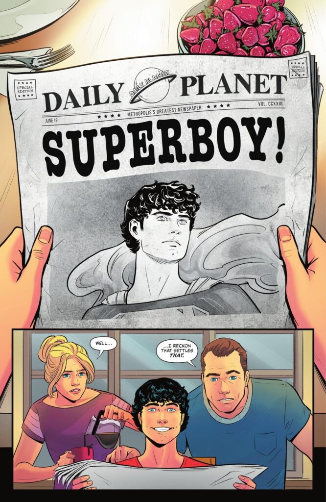 Al momento de escribir esto, el Origen oficial de Superman en la continuidad regular esta en flujo. En la nueva guía diseñada para establecer el lore, The New History of the DC Universe, Mark Waid cita partes tanto de Birthright como de Secret Origin, mientras que en Action Comics nos relata una nueva historia de Clark en su juventud, mostrando que en ese entonces actúa de manera semi-pública en un traje casero. Waid, un autor al que he citado en este escrito en multiples ocasiones, finalmente encuentra la manera más ingeniosa y sencilla de que Superboy exista y sea Lois quien le da el nombre en Action Comics #1088: