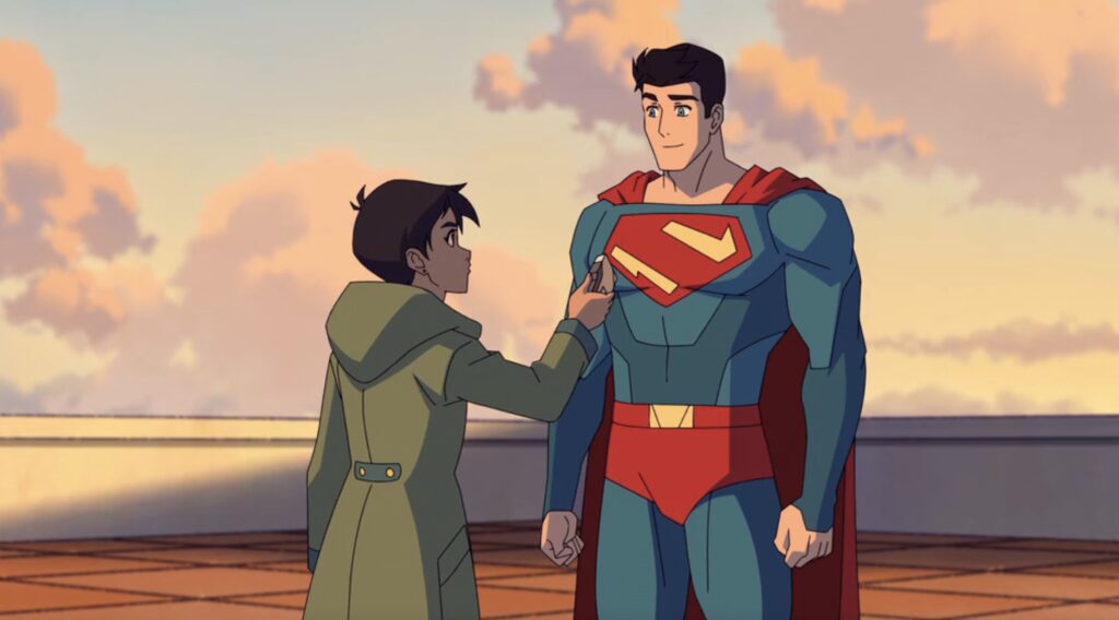 Superman vuelve a la animación serial en el 2023 con My Adventures with Superman, desarrollada por Jake Wyatt con animación del estudio coreano StudioMIR y con Jack Quaid y Alice Lee en las voces principales. La secuencia de eventos una vez más recuerda a John Byrne: Clark hace un despliegue publico de sus poderes sin usar un traje, y Lois es quien con entusiasmo lo denomina «Superman». Después, Clark confronta su origen extraterrestre teniendo contacto con una IA de Jor-El, y lo vemos portar la cresta: