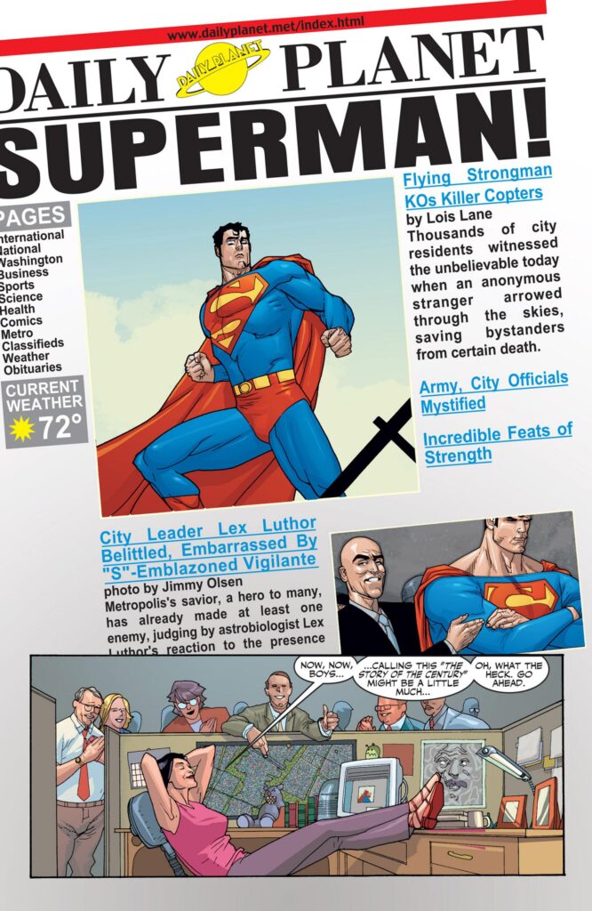 Además de la «S«, en esta encarnación Lois remarca el conocido paralelismo de nuestro Hombre de Acero con el concepto del ‘Superman’ (o Übermensch) del filosofo alemán Friedrich Nietzsche.