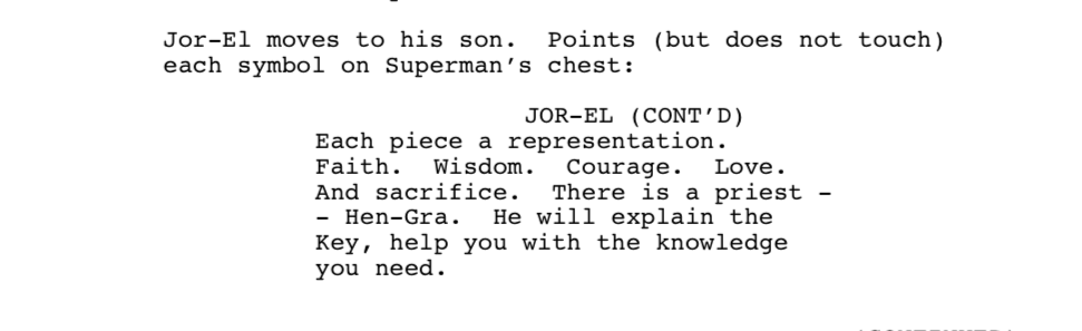 During the tortuous development of what eventually became Superman Returns by Bryan Singer, J.J. Abrams wrote a script for a film called Superman Flyby, and while screenplays for unproduced movies may be outside the scope of this writing, Abrams deciding to give each yellow part of the emblem a distinct meaning was too interesting and peculiar to not include: